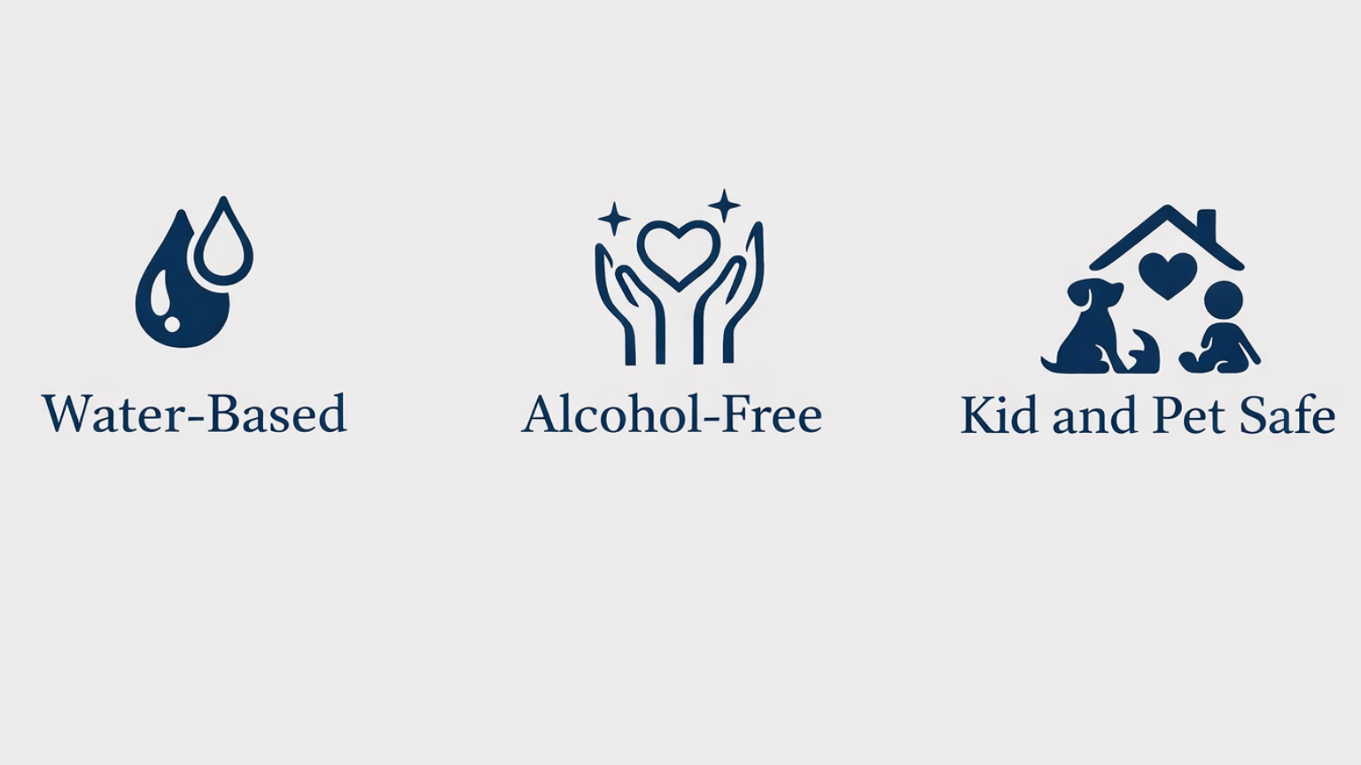 - Suitable for sensitive environments, including vehicle interiors and residential settings, without harsh or corrosive chemicals.